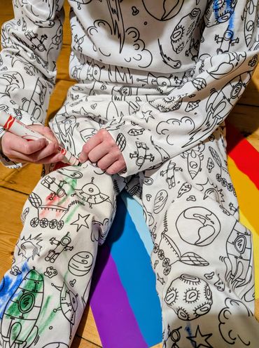 The CozyCanvas™ Range turns soft, 100% cotton pyjamas into mindful bedtime fun — letting kids colour, design, and dream in their own creations.